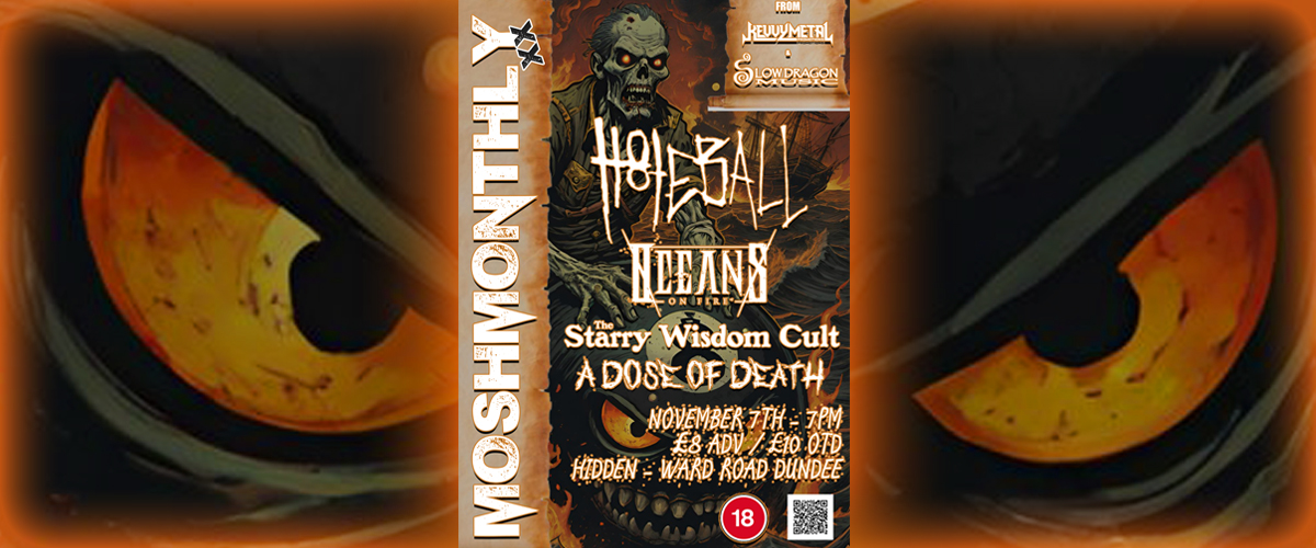 Ok, so we couldn’t sync up close to Halloween, but we all still love “Goth Christmas” at any time, right? The TWENTIETH Mosh Monthly is topped and tailed with horror, regardless. It kicks off with Glasgow true crime squad, A Dose Of Death, self-named ‘murder core’ riffers The Starry Wisdom Cult, and mighty meaty metalcore mob Oceans On Fire. It’s then wrapped up by lunatic luchadors H8teball, who always bring chaos!